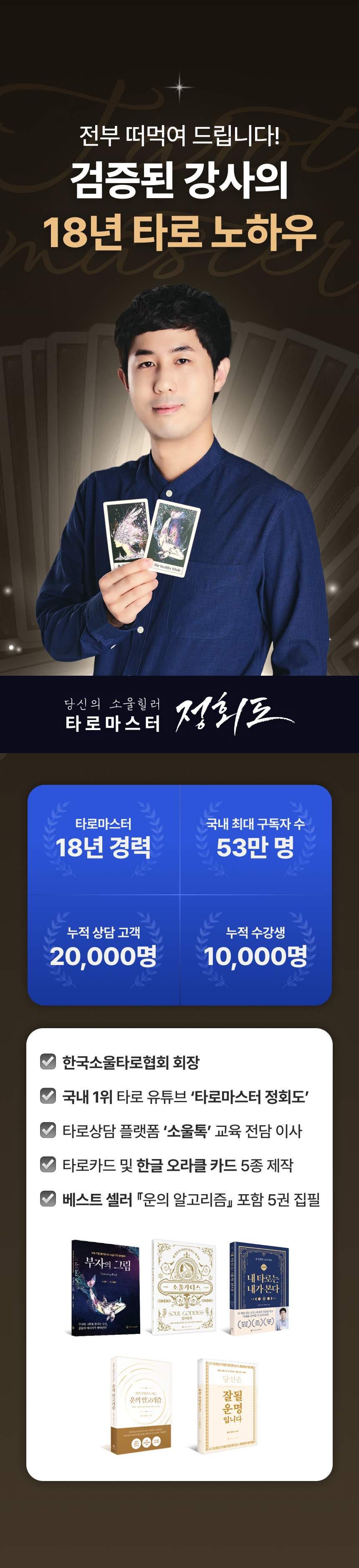다음 타로 유튜버들 강의는 하나도 귀에 안들어오던데 정회도 선생님 강의는 정말 귀에 쏙쏙 들어오고 자동 입력됩니다.