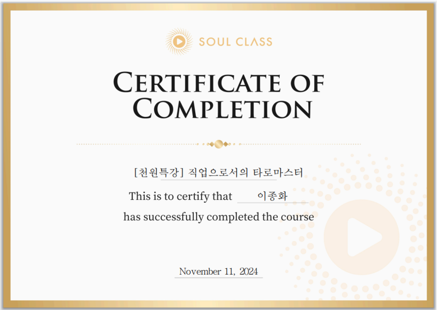 그러면서 저 또한 타로마스터를 직업으로 삼고 싶은 소망이 생겼고 교육을 수강하면서 확신을 갖게 되었어요.